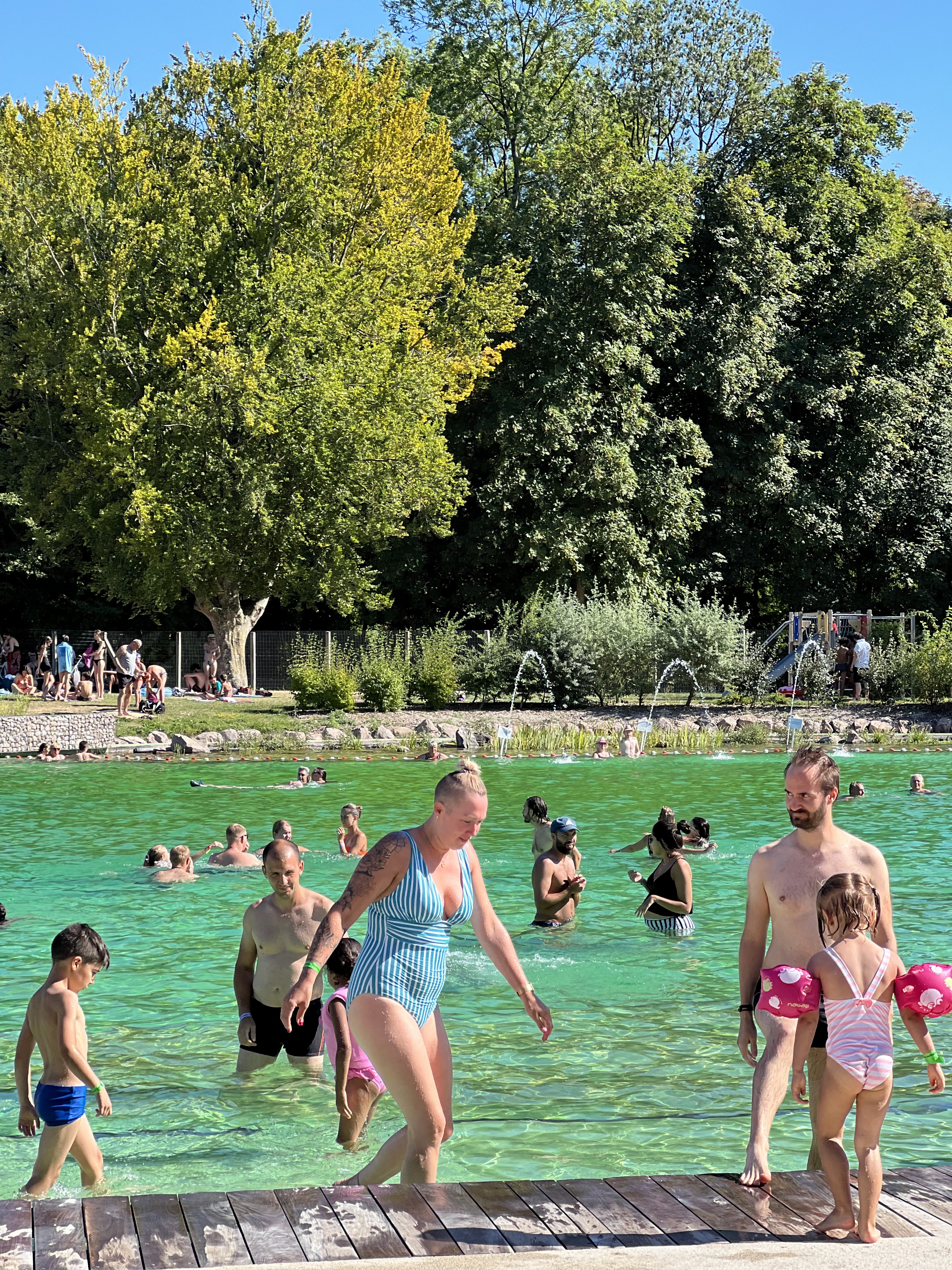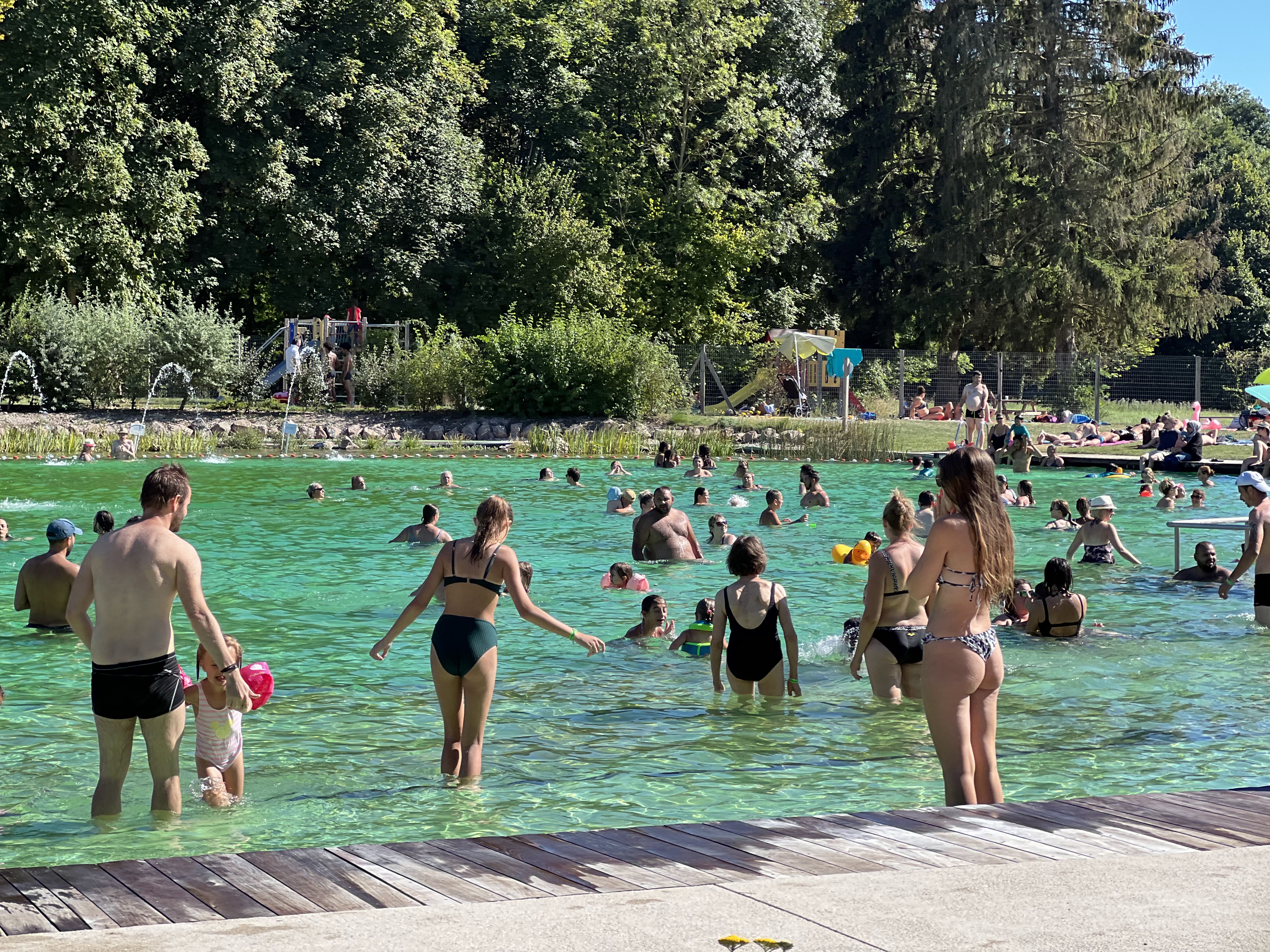 Piscine biologique très agréable, les enfants adorent, ça ne pique pas les yeux et ça pue pas le chlore. Il y a des jeux d'eau et il y a des maitres nageurs Bémol quasiment pas de points d'ombre pour étaler sa serviette dans l'herbe. Entrée 4€, c'est pas donné quand on y va avec 3 enfants mais bon une fois de temps en temps c'est sympa.