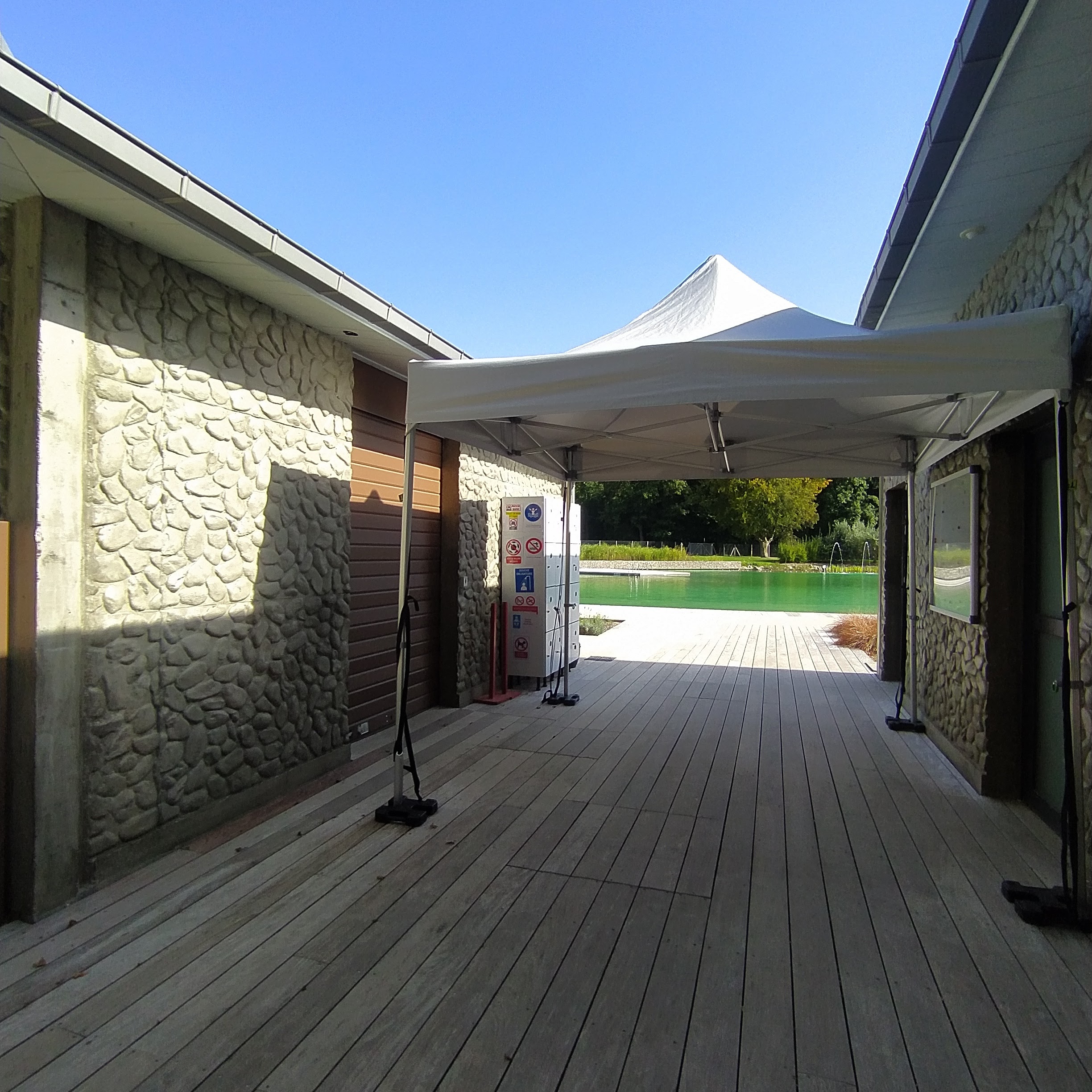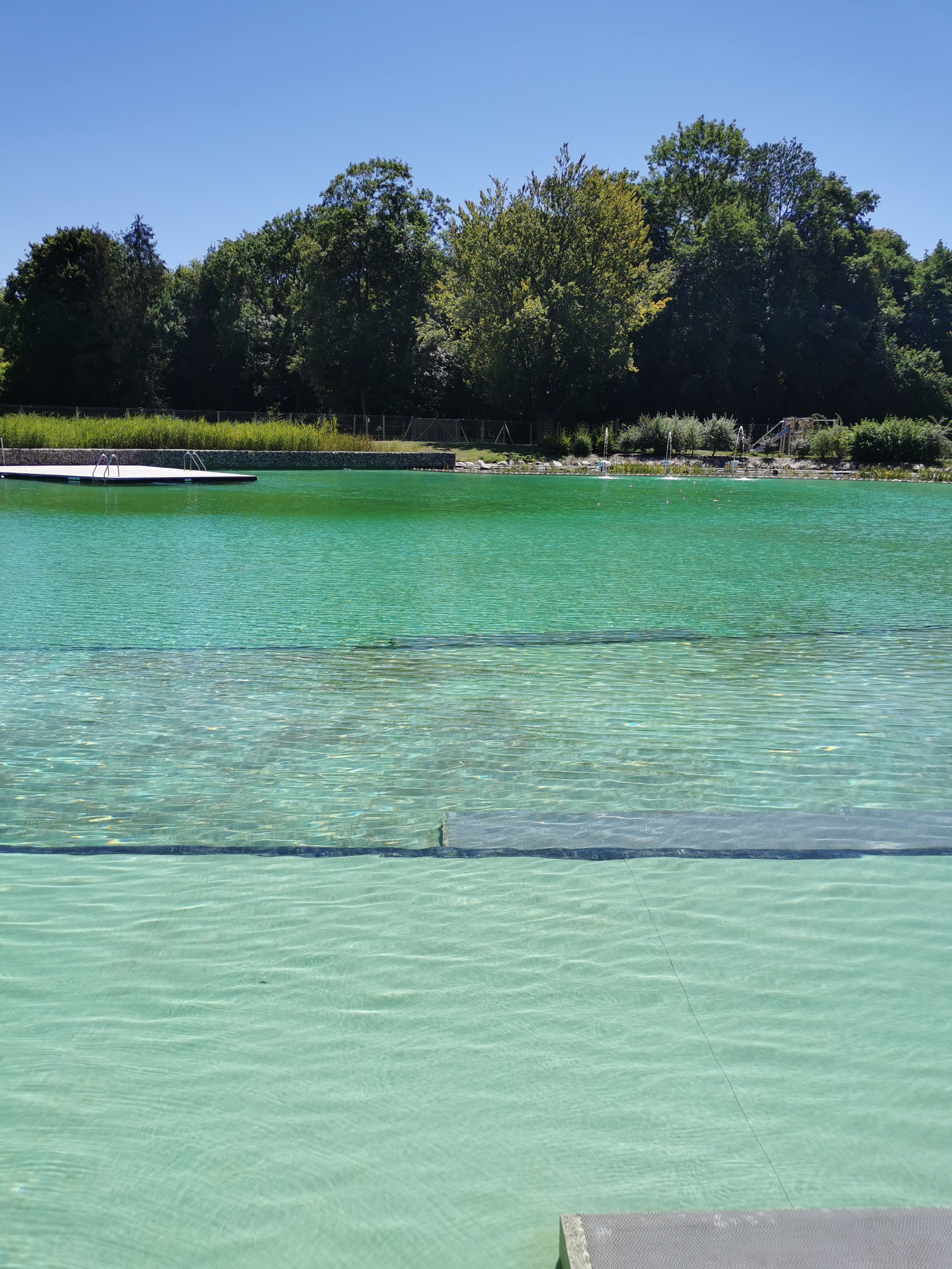 Tres bel endroit , baignade biologique donc pas de problemes de peau dû au chlore , et tout etait propre a notre arrivee vers 13h . Pataugeoire et jeux d eau pour les petits , plateforme pour plonger pour les plus grands , snack a l interieur . JE RECOMMANDE