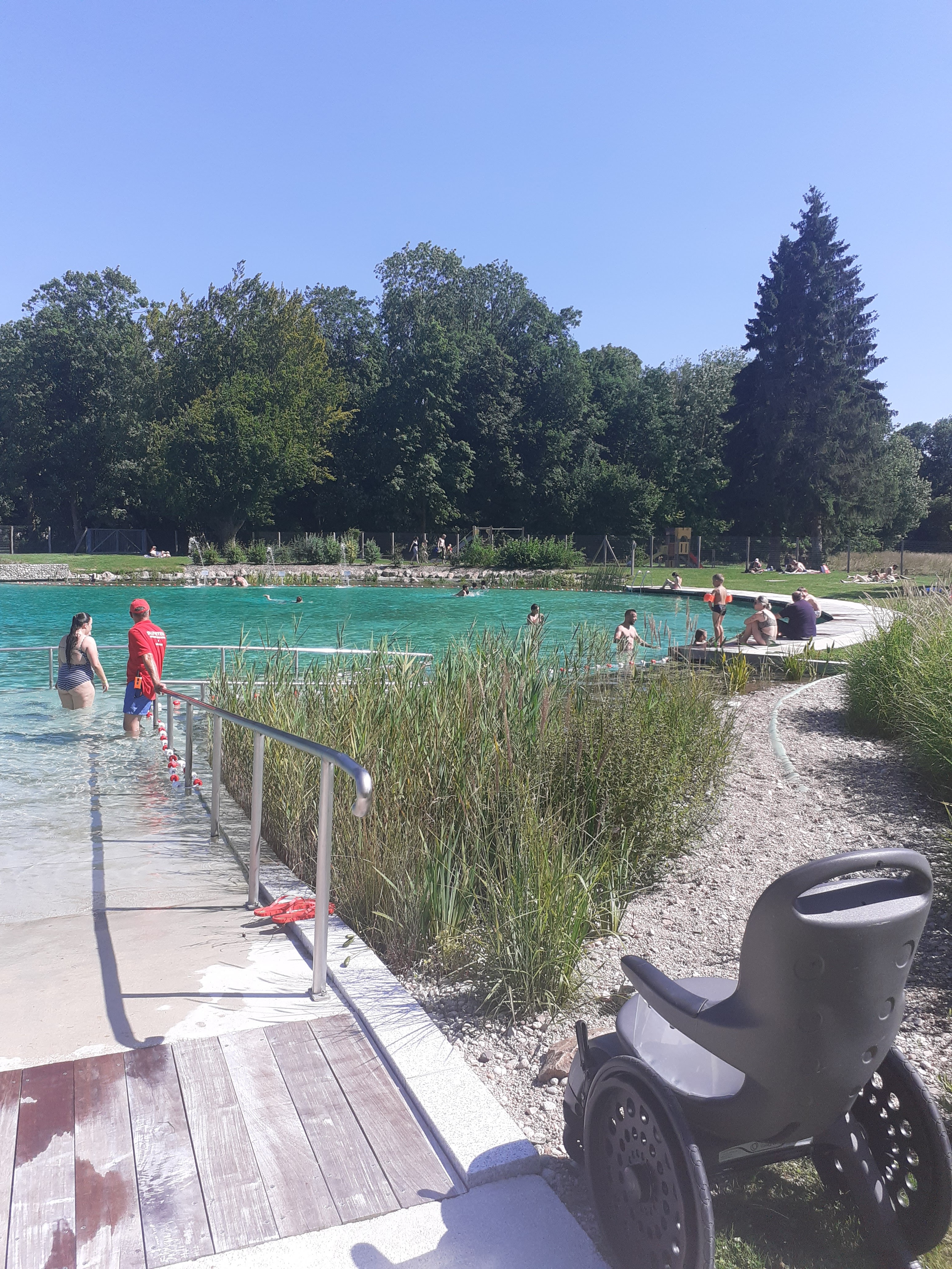 C’est vraiment pas grand, y’a un peu d’ombre mais faut arriver de bon heure et surtout il faut constamment surveiller les enfants dans l’eau car les maîtres nageurs sont plus des vigiles qu’autre chose. C’est 4€ l’entrée. Par contre l’eau était à 23 degré le jour de notre venue c’est un peu frisquet mais avec 32 en c’est quand même rafraîchissant. C’est par contre assez mal indiqué et il vaut mieux se fier au gps attention cependant le chemin indiqué est barré à la circulation. Par contre c’est adapté pour la baignade des personnes à mobilité réduite.