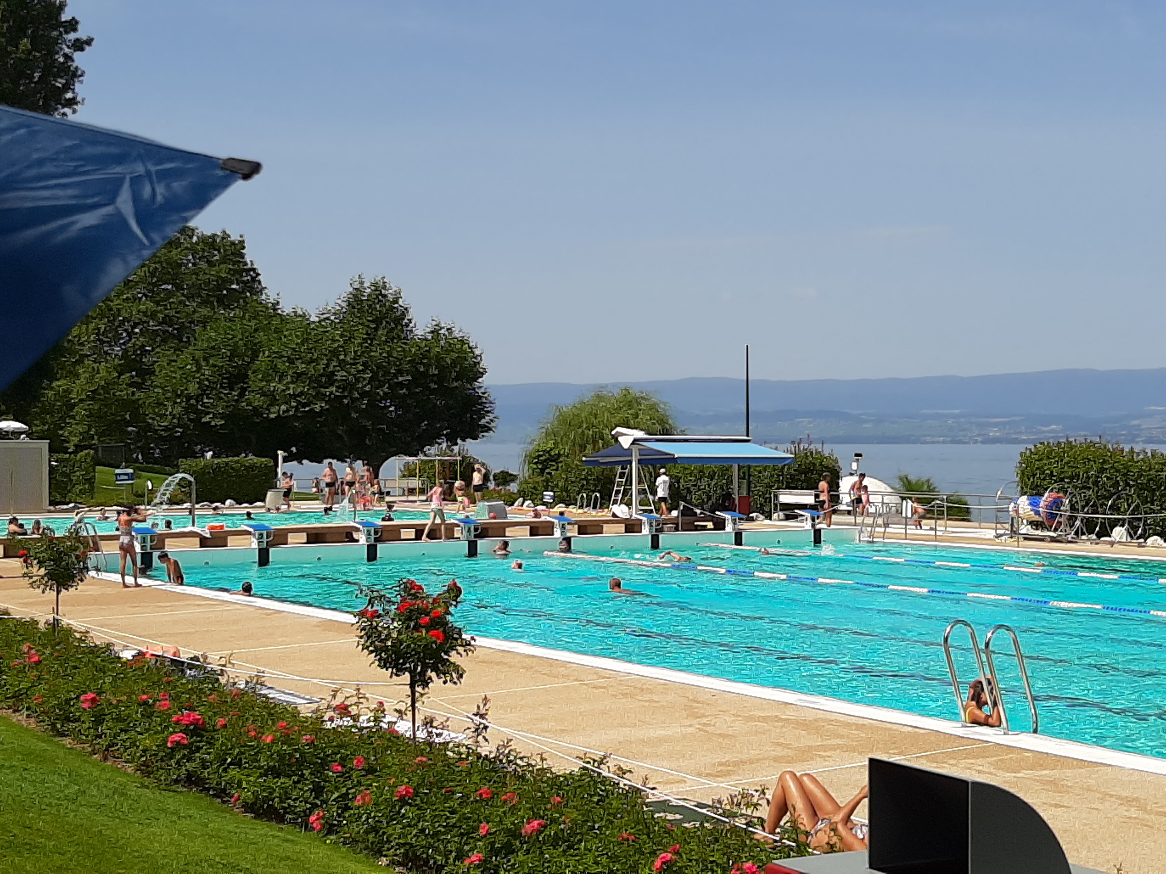 Une magnifique piscine avec vue sur le lac Léman. Présence d’un bassin olympique, de bassins pour enfants et d’un toboggan. Baignade surveillée. Une grande étendue de pelouse très bien entretenue est présente aux alentours des bassins. Il y a également des tables de ping-pong. Ensemble très propre (sanitaires, vestiaires)